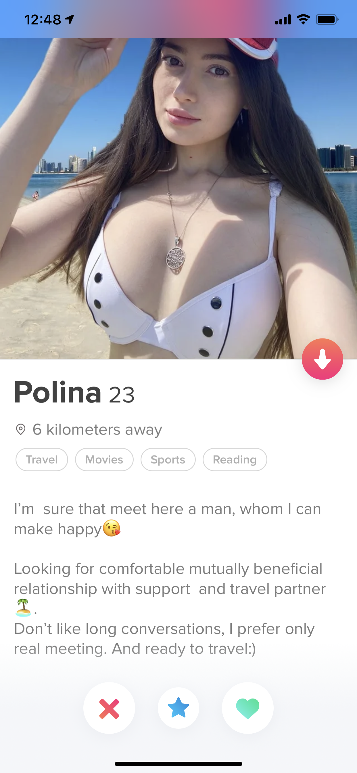 της έκανα σουπερλαικ να δούμε θα απαντήσειi think someone brought her to Greece unless she uses "tinder passport" since she is 6km away from you