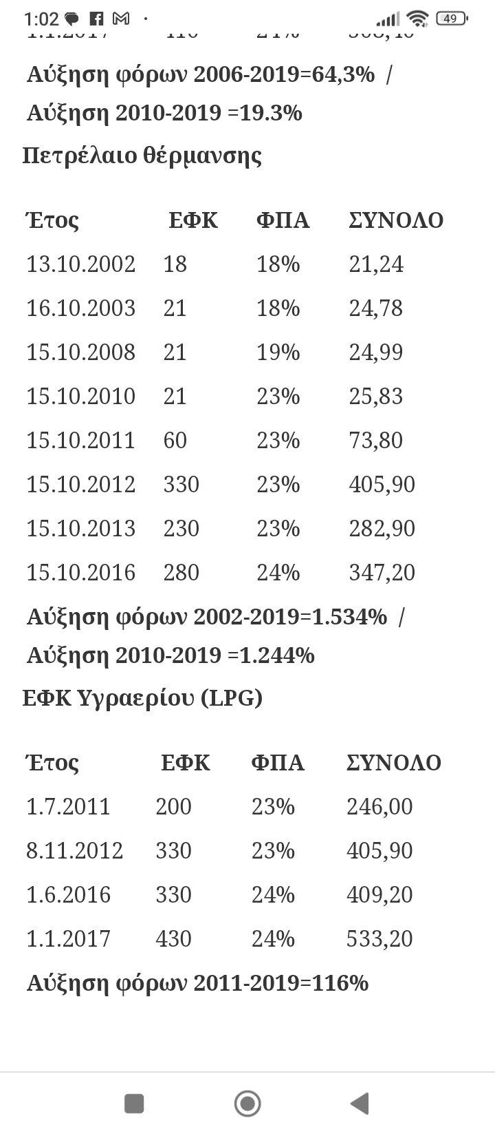 Τι λες ρε ;Στο συγκεκριμένο παράδειγμα ο τέλη παίρνει σαν παράδειγμα το πετρέλαιο θέρμανσης που είχε πολύ μεγαλύτερη αύξηση του φόρου από τα άλλα καύσιμα