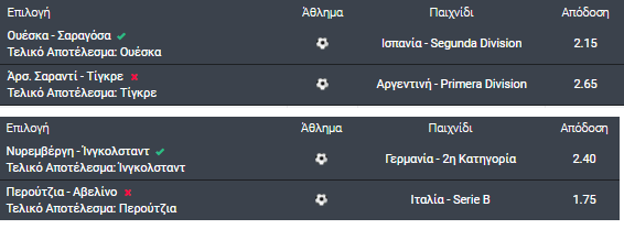 Αρ. Επιλογές Αγώνισμα Ημερομηνία Αγωνίσματος Όροι eachway Αποδόσεις Αποτέλεσμα