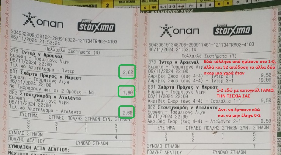 Επίσης ανεβάζω και τα δελτία που χάνω κι όχι μόνο τα κερδισμένα. Παίρτε κι από εκεί ιδέες όποτε το πράττω.