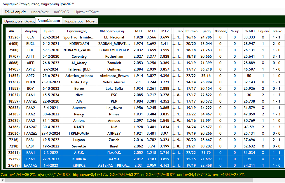 Βάζοντας όρια 1.9 - 2.1 δες την έξοδο: γενικά δεν συμφέρει...Ευτυχώς που δεν έπαιξα.